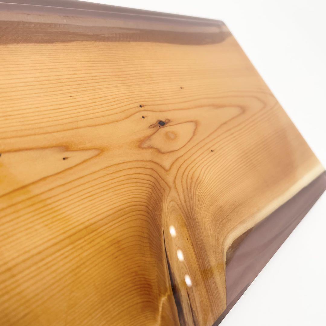 美しい木目を持つイチイの木材と、洗練された輝きを放つレジンが織りなす、特別なウッドレジントレイ。